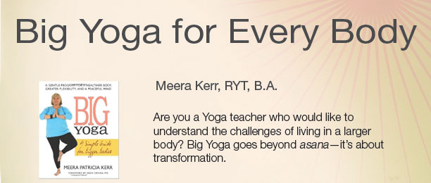 Her groundbreaking program, Big Yoga, began with a DVD, Big Yoga Hatha 1, to help plus-size Yoga students enjoy this life-affirming practice through the use of adapted poses designed for the larger body. Meera followed the DVD with two books: Big Yoga: A Simple Guide for Bigger Bodies and Big Yoga for Less Stress, as well as a 2nd DVD, Big Yoga Flexibility. Meera’s Yoga students are finding they can lower their blood pressure, improve glycemic function, feel more energized and happy with the simple and effective Yoga postures (asana) and gentle deep breathing (pranayama).