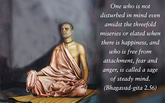 It means they have no ups and downs; they are a level‑headed person who doesn’t swing to extremes. They don’t get depressed one moment by a loss or by somebody talking negatively about them. They don’t get excited when someone comes and puts a garland around their neck. They are balanced in relation to the dualities: pleasure, pain, profit, loss, praise, blame, and so on. They see the dualities, even if the differences in life, but they are not affected by them because they know that everything and everyone is necessary in this world.