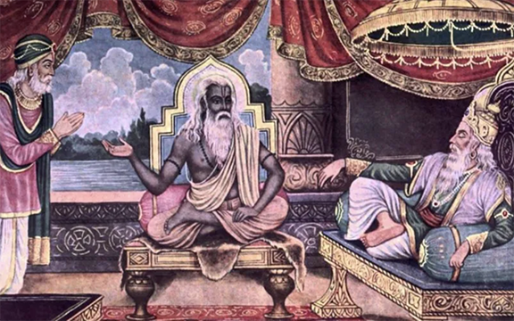 (Photo, L-R: Sanjaya, sage Vyasa and Dhritarāśhtra, the king.)