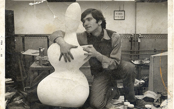 Photo: The artist at the installation of his sculpture “The Dance.”